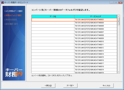 A | キーパー財務09のコンバート先を指定し、「次へ」をクリックします。 | |