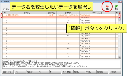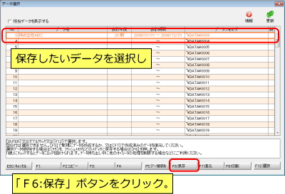 保存したいデータを選択し、「F6:保存」ボタンをクリックします。 | |