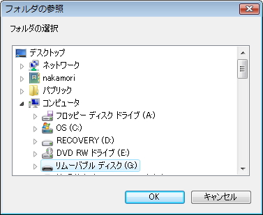 C | フォルダの参照画面が表示します。データが保存されているフォルダを指定します。 | |