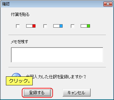 B | 仕訳登録の確認画面が表示します。「登録する」をクリックします。 | |