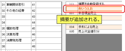 A | 仕訳を入力します。摘要欄に追加したい摘要を入力します。 | |