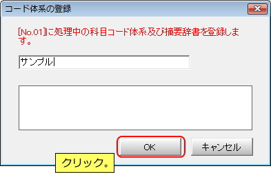 コード体系の登録画面が表示します。体系の名称を入力し、「OK」ボタンをクリックします。 | |