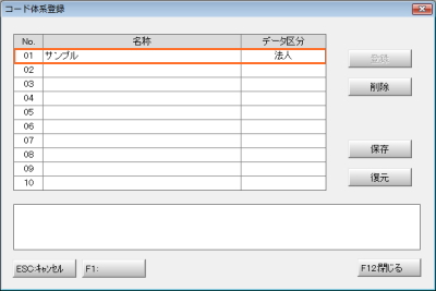 あらかじめ【拡張機能】−【コード体系登録】で体系を登録しておけば、新規にデータを作成する際にその体系を利用することができます。 |