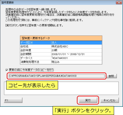 C | コピー先が表示したら、「実行」ボタンをクリックします。 ※データのコピーとは別に事前にバックアップを取る事を強く推奨します。 |