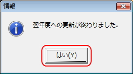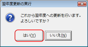 D | 翌年度更新の実行確認画面が表示します。「はい」をクリックします。 |