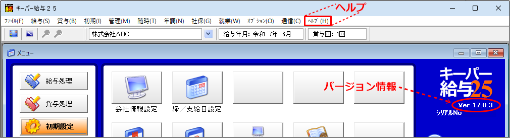 メインメニュー画面のメニューバー「ウィンドウ・ヘルプ(H)」をクリックします。 |