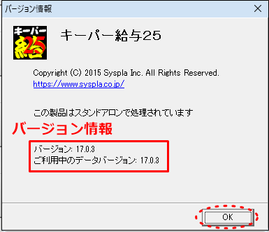 システム>バージョン情報が表示されます。