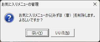 1.お気に入りメニューから削除するメニュー項目をクリックします。