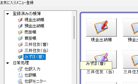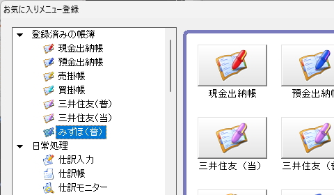1.お気に入りメニューに登録するメニュー項目をクリックします。